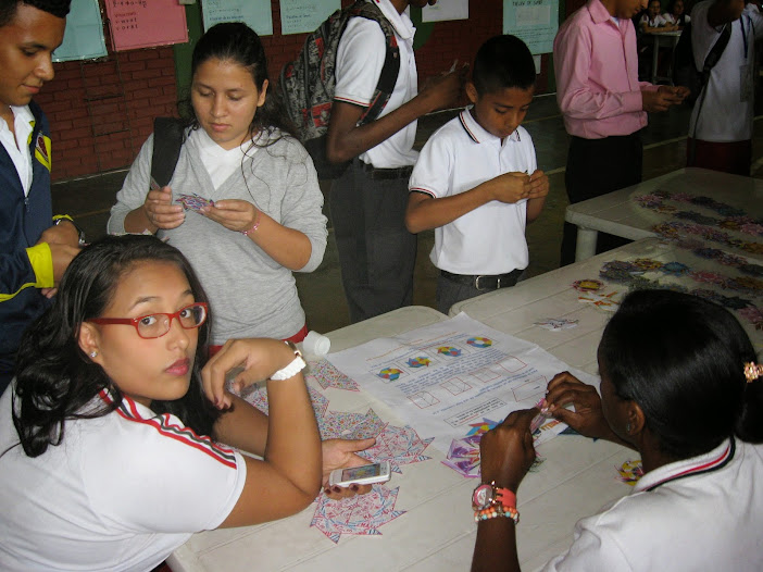 Cordial saludo. A continuación presento el registro fotográfico del trabajo realizado por los estudiantes del grado 8-11: La construcción del Pentágono Decorativo en papiroflexia modular, elaborado con rectángulos de proporciones 1:2.